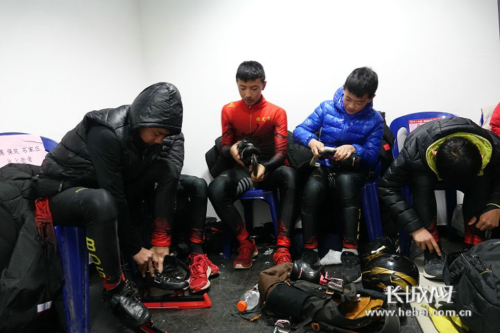 速滑小将们在候场。长城新媒体记者 刘澜澜 摄