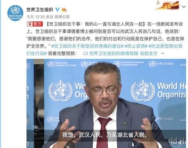 世卫组织总干事:感谢湖北人民的合作他们付出和行动既是在保护自己也是在保护全世界