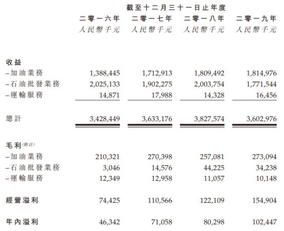 目标集团经营两大业务分部,即(i)出售成品油产品及(ii)石油运输服务。截至2016年—2019年12月31日止年度,出售成品油产品所产生的收益分别占其总收益约99.6%、99.5%、99.6%及99.5%;而石油运输服务所产生的收益分别占其总收益约0.4%、0.5%、0.4%及0.5%。