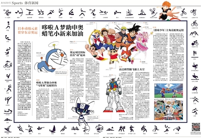 在设计奥运会吉祥物、运动项目图标过程中,其独特优势展现得淋漓尽致;哆啦A梦、马里奥、路飞、漩涡鸣人、蜡笔小新、阿童木、高达等动漫角色,纷纷加入助力东京奥运会的行列;尾田荣一郎、古馆春一、荒木飞吕彦等知名日本漫画家,也以不同的方式为东京奥运会预热。