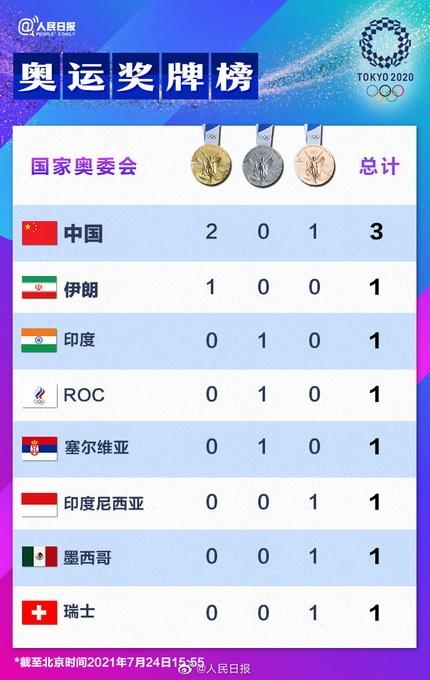 今天,中国选手杨倩摘得东京奥运首金,侯志慧夺下第二金,庞伟获得铜牌,中国目前暂列第一。
