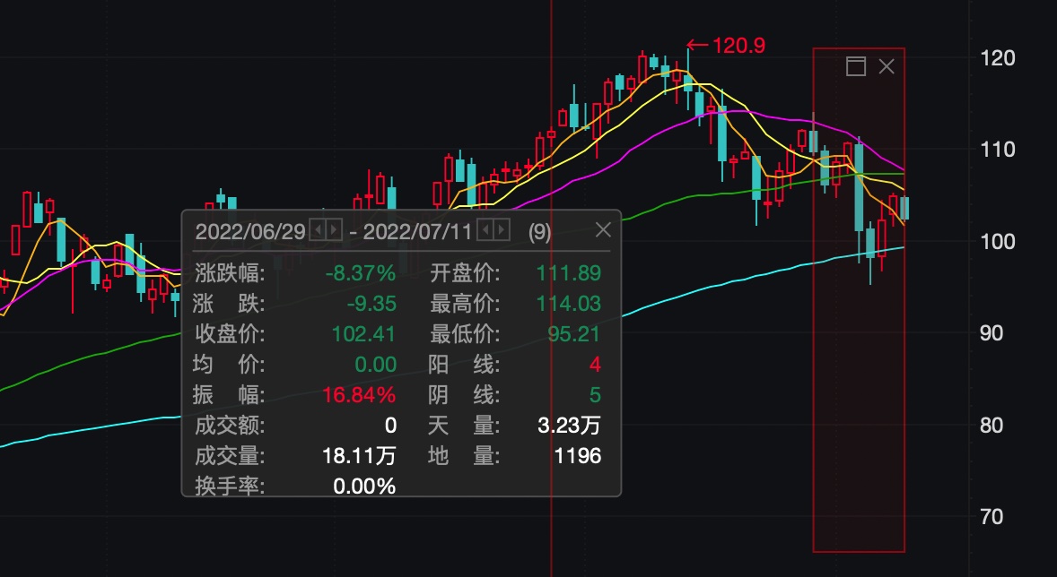 本轮计价周期内,由于投资者担心经济增长放缓导致能源消耗降低,国际原油现单日暴跌,美油(WTI)突然跌落至100美元下方,盘中最大跌超12%。