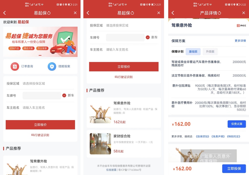 三是数字化销售平台的使用问题。线下场景公司自建平台销售保险投入较大,选取较为成熟的互联网保险中介平台不失为一种事半功倍的方案。当前我国互联网保险中介平台的泡沫已经出清,各家平台的业务特色较为明确,经营模式已经经过市场检验。例如中石化的易捷加油app是与车车车险平台合作,通过直连互联网保险中介平台,为客户提供了丰富的产品选择空间和快捷便利的投保交易体验。
